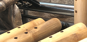 Hardwood Bamboo. This Saxaflute has the workability of real wood. The pieces I select are almost solid and so I bore them out on a wood turning lathe. The work on the hardwood bamboo is the same as making Saxaflutes from real wood. The sound is fuller and very well suited for recordings. It has a fat, wide sound containing plenty of overtones. This is the choice for most musicians. The outward appearance is that of a good quality wooden instrument. Triple buffed on polishing wheels and waxed. The feel in your hands is of quality and craftmanship. It has a sound to match.